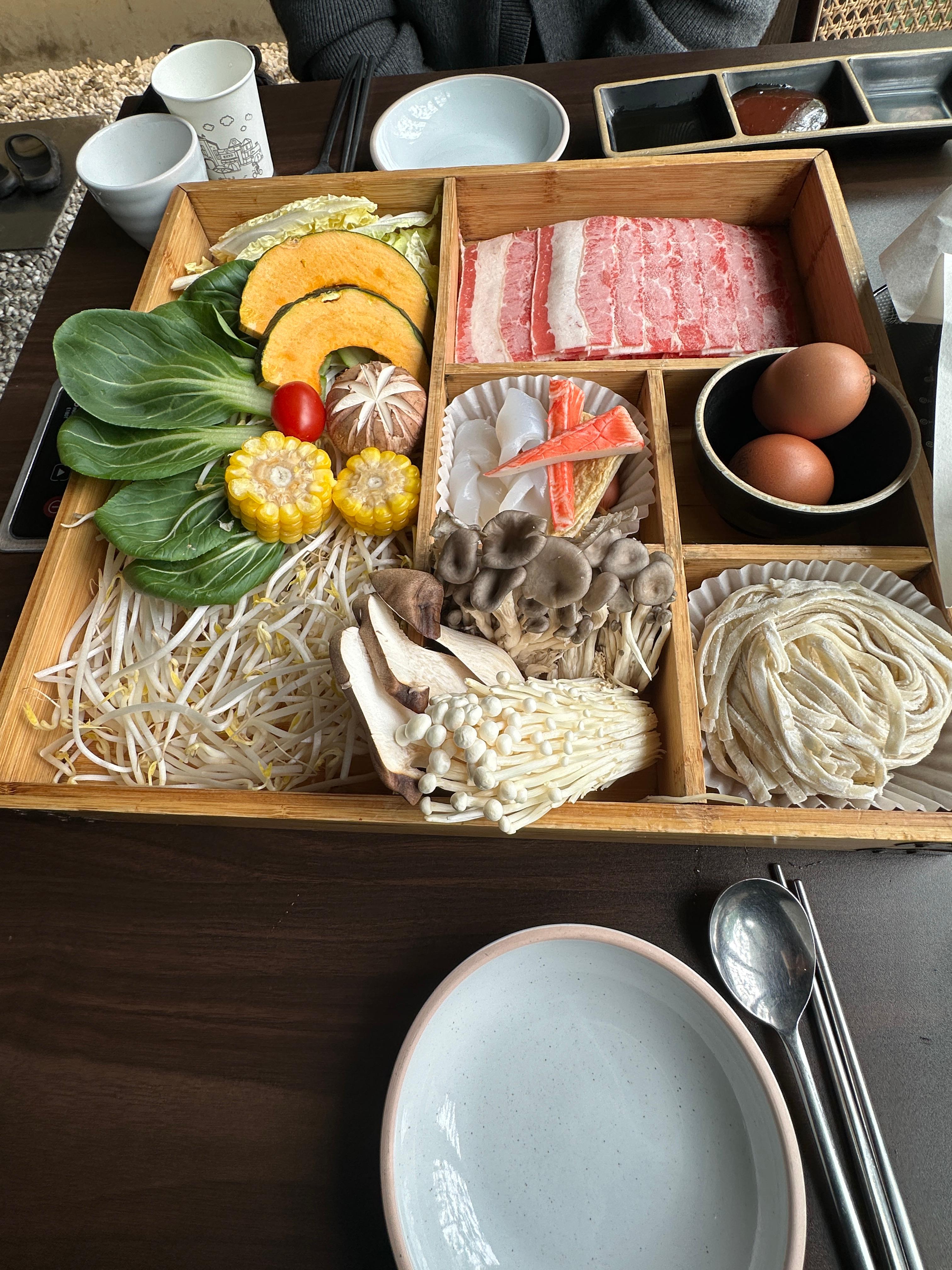 📌 전채요리가 정갈하게 나오고, 샤브 후 칼국수 마무리까지 제공돼서 배부르게 먹기 딱 좋아요.
