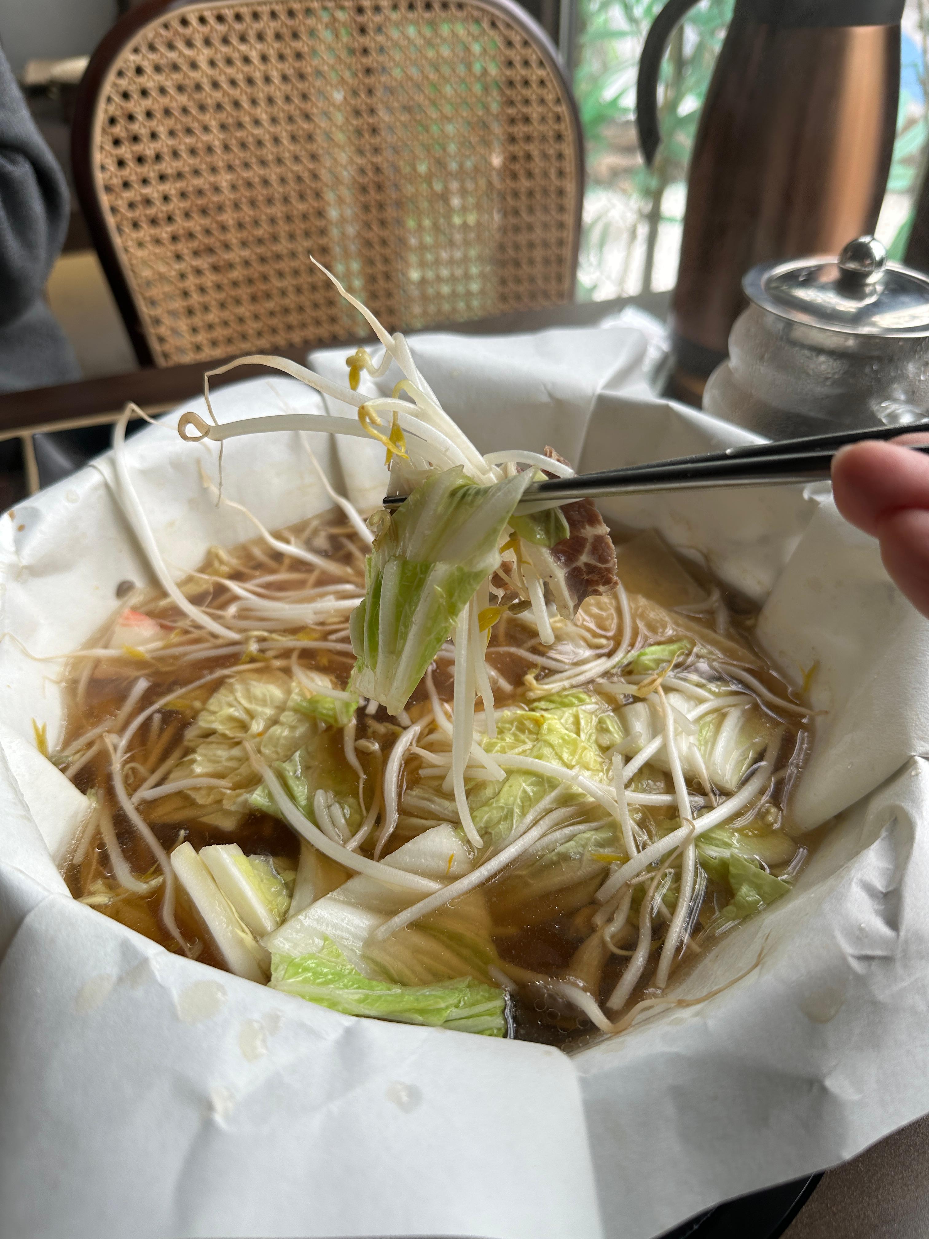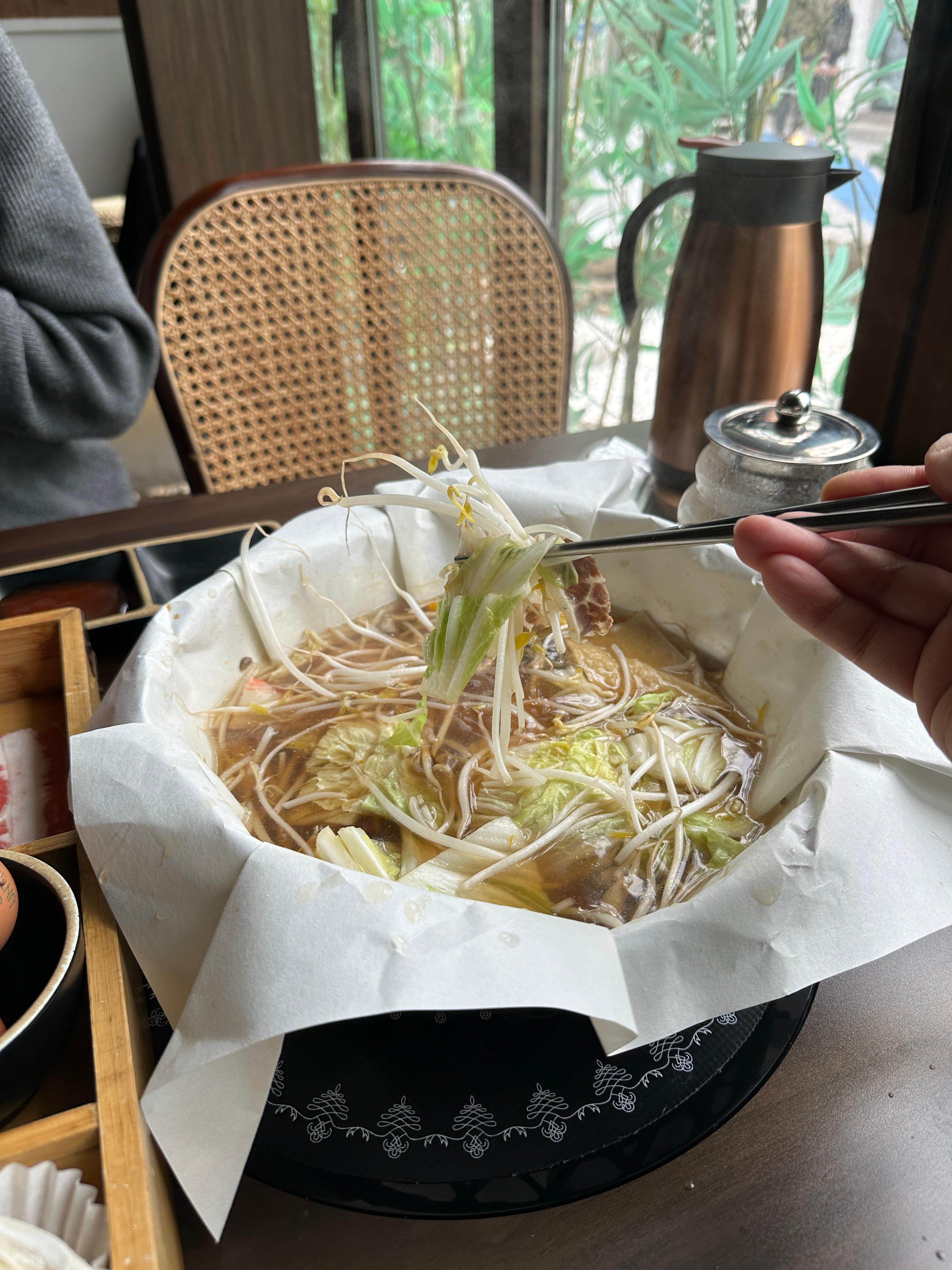 → 맑은 육수 베이스에 고기, 채소, 면을 넣고 담백하게 즐기는 방식